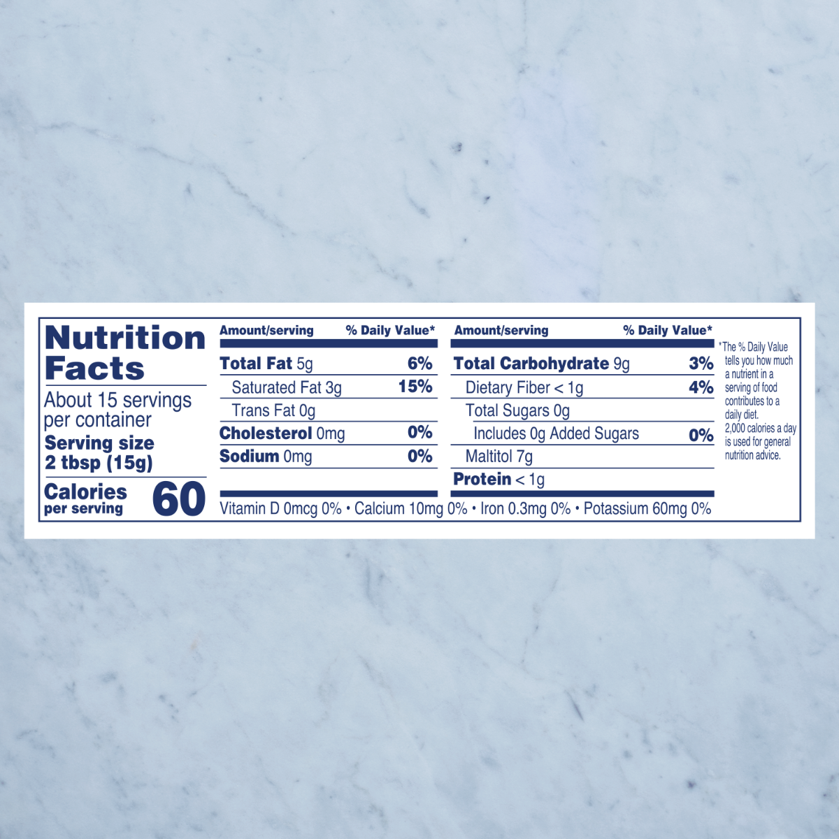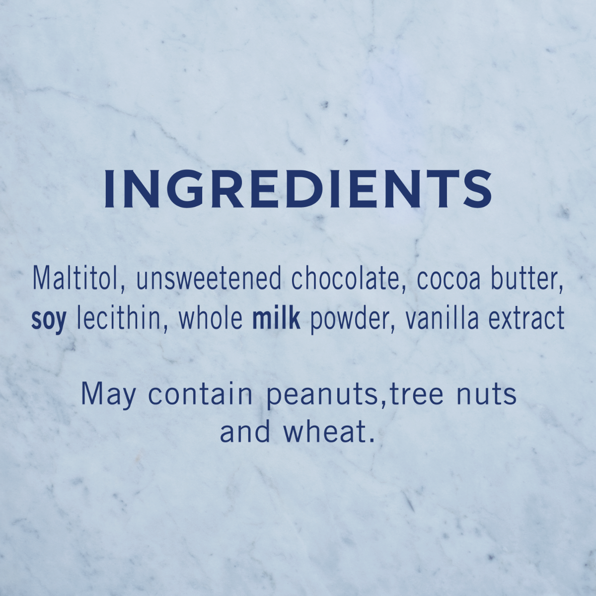 Made with cocoa butter, vanilla extract, unsweetened chocolate and no added sugar