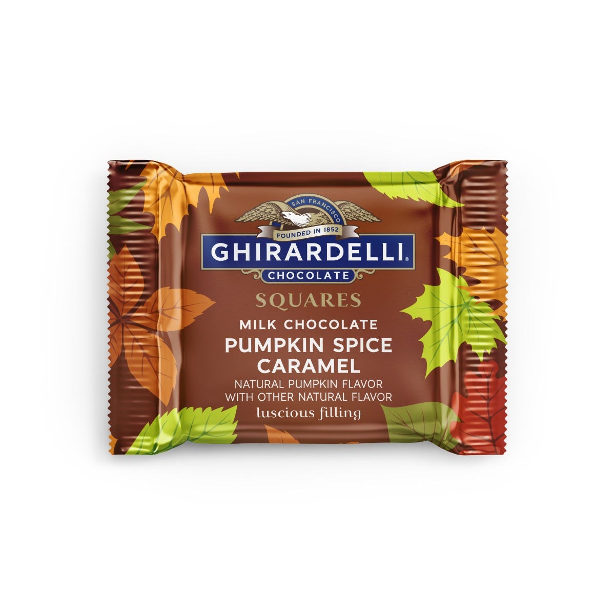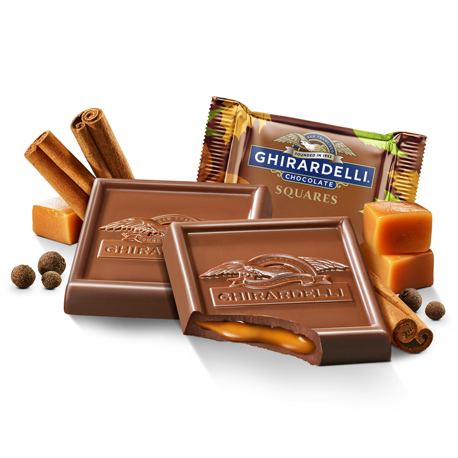 - GHIRARDELLI Milk Chocolate Pumpkin Spice Caramel SQUARES with luscious, buttery, smooth caramel and a touch of pumpkin spice flavor